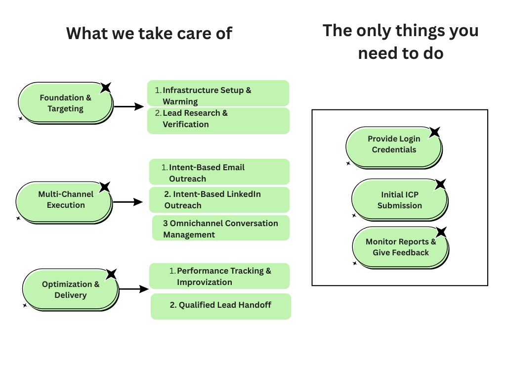 We connect with prospects across email and LinkedIn, each touchpoint is personalized, timely, and designed to drive meaningful conversations and booked appointments.